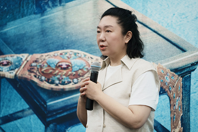 談到話劇《搭手飛人》,她稱這部作品是中國國家話劇院守中華傳統(tǒng)文化之正,創(chuàng)意時代表達之新的作品?!皬膭≈械膫b義精神、武林規(guī)矩來談中華民族道德層面上的精神和智慧,重情重義、守正守信、獨立自強。通過這部劇,看懂中國人,做人行事的人文特質和自覺意識,這種自覺,是高妙的智慧,是古老大國‘天人合一’的高維思想,庚續(xù)下來的‘中國自覺’。這部劇講述武林故事,也探討中國精神。期待在浩峰導演、呂波導演的舞臺構想中,讓觀眾沉浸武林,認知中國?!?/p>