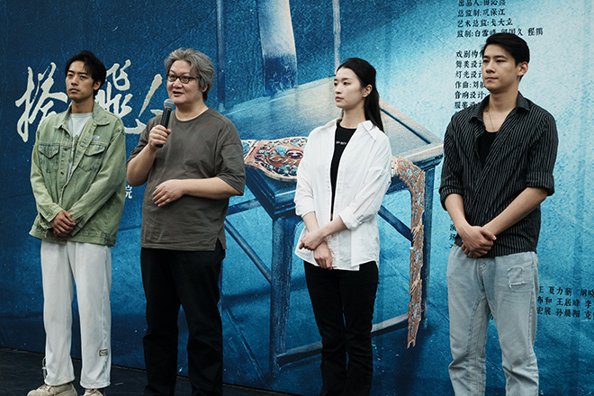 徐浩峰導演介紹青年演員翟冠華(右二)、肖琪峰(左一)、胡曉龍