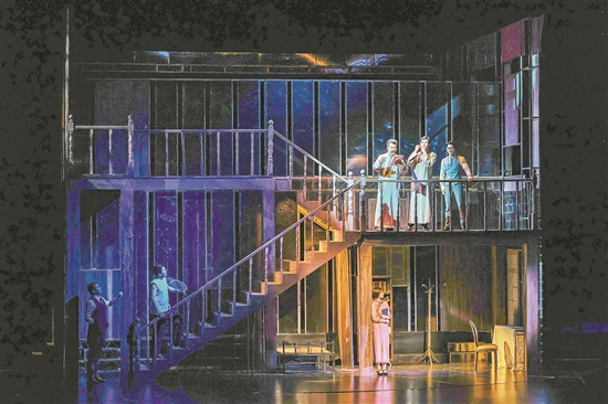 《春園·1923》采用了360度旋轉(zhuǎn)舞臺的設計。通過豐富的舞臺轉(zhuǎn)場,春園和曾為中共三大會址的兩層小樓凝練地佇立在同一空間,隨著舞臺旋轉(zhuǎn)、時空切換,人物在場景內(nèi)外自如穿梭,推進著故事的發(fā)展。