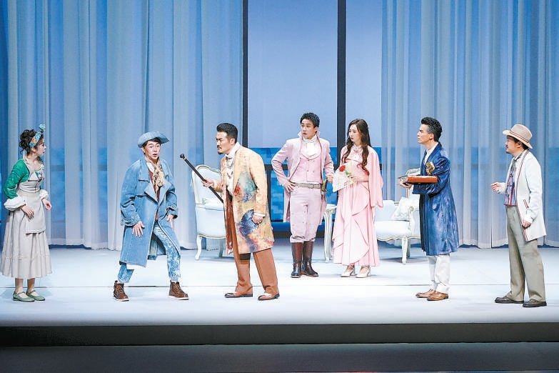 “在保留原作時(shí)代風(fēng)貌的基礎(chǔ)上,我們期待能進(jìn)行現(xiàn)代視角的轉(zhuǎn)譯,讓這部經(jīng)典作品煥發(fā)出更輕快時(shí)尚的舞臺(tái)表達(dá)?!眹?guó)家大劇院副院長(zhǎng)張堯說(shuō)。這一版《一仆二主》集結(jié)了中國(guó)國(guó)家話劇院導(dǎo)演王劍男、舞美設(shè)計(jì)張華翔等主創(chuàng)藝術(shù)家,由董汶亮、楊淇、郭爍杰、孫立石等國(guó)家大劇院戲劇演員隊(duì)演員出演。他們首先呈現(xiàn)了《一仆二主》原作靈巧詼諧的精髓,將角色間環(huán)環(huán)相扣的“信息差”層層剝開(kāi)。