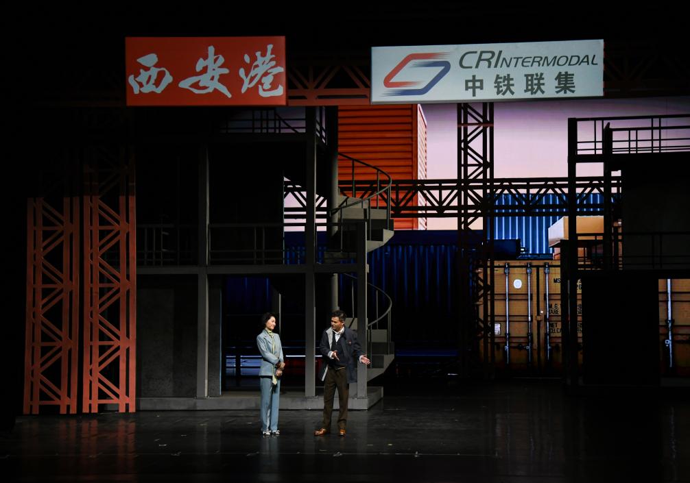 當(dāng)日,由西安話劇院原創(chuàng)排演的話劇《長安號(hào)的笛聲》在西安首演。該劇講述了西安全力推動(dòng)中歐班列集結(jié)中心建設(shè),將一座四等小站建設(shè)成為“國際陸港”的奮進(jìn)故事。