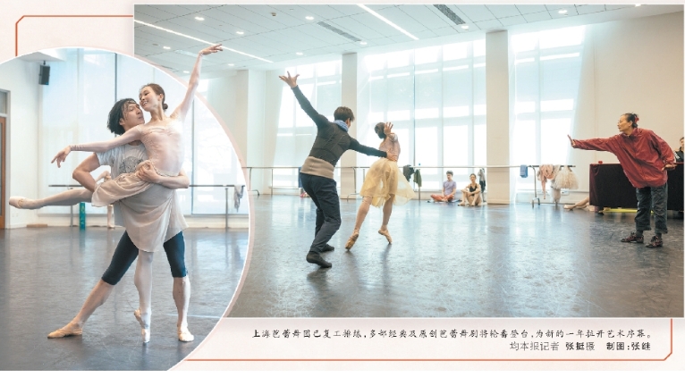 上海芭蕾舞團已復(fù)工排練,多部經(jīng)典及原創(chuàng)芭蕾舞劇將輪番登臺,為新的一年拉開藝術(shù)序幕。均本報記者 張挺 攝 制圖:張繼