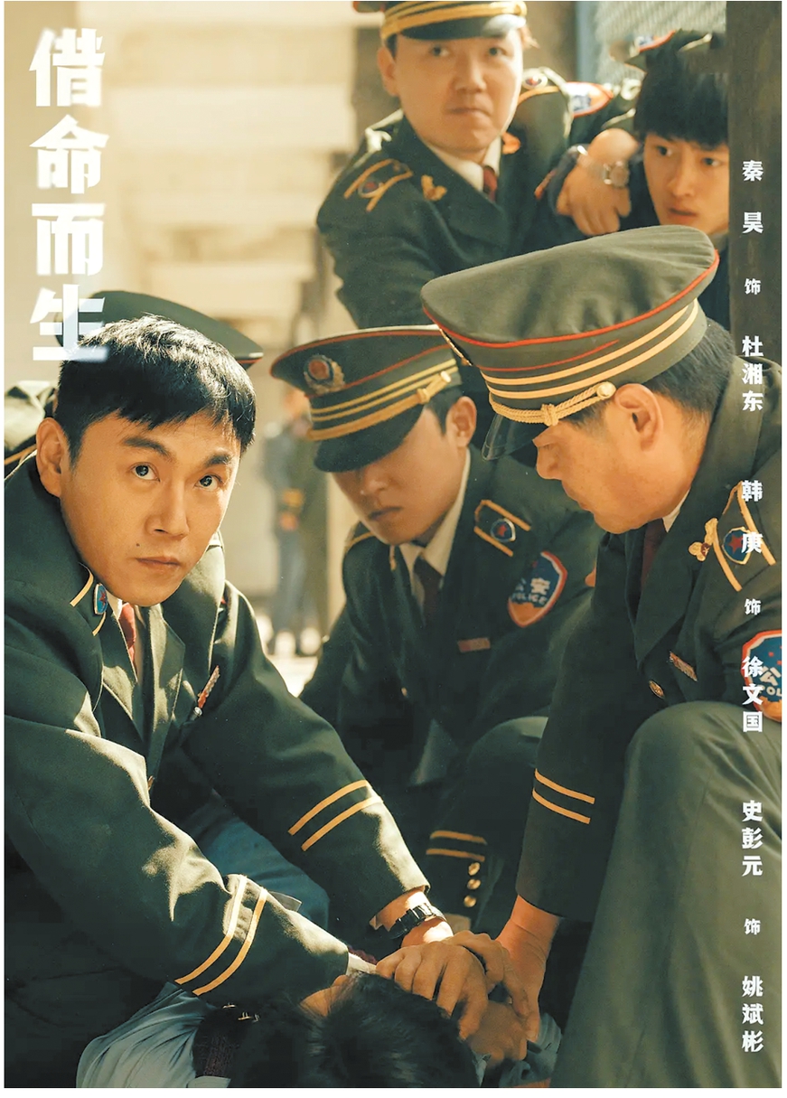 演員的表演處理也指向同樣的藝術(shù)效果。劇中幾場情感表達的重頭戲,都采取了較為克制的呈現(xiàn)。例如姚斌彬槍決前夜與母親訣別的場面,主要表演內(nèi)容是艾麗婭飾演的崔麗珍凄惶、焦急地穿過重重鐵門,姚斌彬做出了含淚抬頭的反應(yīng)。接著崔麗珍短促地喚了一聲“兒子”,姚斌彬崩潰著下跪。演員情感飽滿的表演,在有限的篇幅中形成簡潔有力表達效果。還有多年后杜湘東得知姚斌彬被冤的真相后,極度痛心和憤怒的表演段落。從人物情緒爆發(fā)掀了桌子開始,之前的中景拍攝切換為全景拍攝,秦昊的怒吼、掩面、捶打等發(fā)泄性的動作,因為拍攝視點的遠離,被納入到街景的整體畫面中,顯得徒勞無力,甚至有些荒誕。這些處理方式,呈現(xiàn)出作品對復(fù)雜性的追求與嘗試,構(gòu)成了《借命而生》獨特的藝術(shù)風(fēng)格。