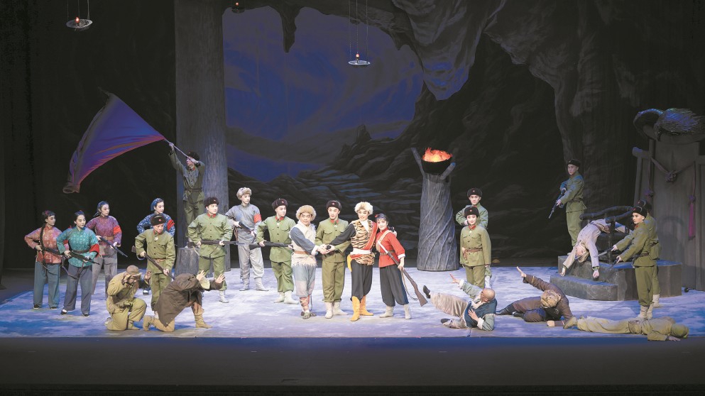 “穿林海,跨雪原,氣沖霄漢?!碑?dāng)上海京劇院余派老生藍(lán)天唱響《智取威虎山》的經(jīng)典段落,觀眾席內(nèi)迸發(fā)出熱烈的掌聲與叫好聲,響徹上海大劇院。昨晚,第十屆中國戲劇獎(jiǎng)·梅花表演獎(jiǎng)(第32屆中國戲劇梅花獎(jiǎng))首場(chǎng)終評(píng)劇目《智取威虎山》精彩亮相,藍(lán)天鮮活再現(xiàn)楊子榮的光輝形象,一眾實(shí)力派演員臺(tái)上“痛飲慶功酒”,也醉了臺(tái)下觀眾,共寫戲劇盛事美好春秋。