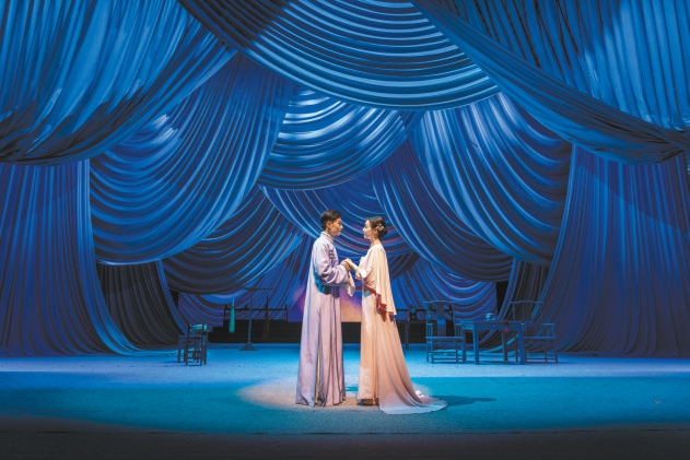 近日,北京人民藝術(shù)劇院再次排演該劇,以意象化手段賦予劇中男女主人公的愛情以詩意——不但在兩人交談時(shí)加入了許多戲曲身段,更加入了新的臺詞強(qiáng)化兩人的愛慕之情;結(jié)尾以一段雙人舞展現(xiàn)兩個(gè)自由的靈魂在虛空中的相會;不時(shí)出現(xiàn)的昆曲《牡丹亭》作為背景音樂,昭示兩人超越生死的愛戀。