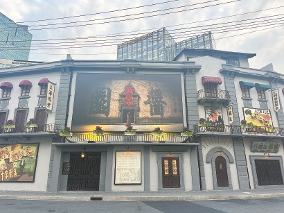 這兩天,乍浦路風(fēng)貌影視街入口處,當(dāng)年搭建“醬園”的地方又有了新變化。原先的《桃李劫》《馬路天使》的海報(bào)已撤下,掛起9米長(zhǎng)、5米寬的《醬園弄》首發(fā)巨幅海報(bào),電影拍攝時(shí)熱鬧打卡的城市記憶一時(shí)鮮活起來(lái)。勝利電影院門口的電子屏,滾動(dòng)播放著《醬園弄》幕后花絮,為影片上映做宣傳。