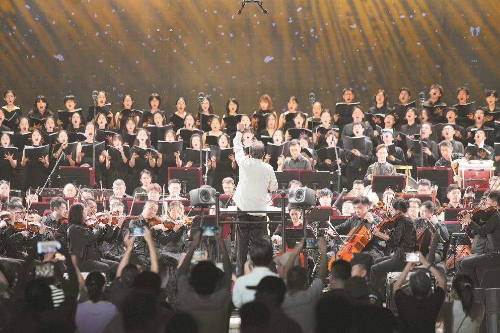 13日晚,上海城市草坪音樂(lè)廣場(chǎng)上空回蕩著激昂的《義勇軍進(jìn)行曲》。在音樂(lè)總監(jiān)余隆執(zhí)棒下,上海交響樂(lè)團(tuán)攜手回聲節(jié)日合唱團(tuán),以一場(chǎng)紀(jì)念中國(guó)人民抗日戰(zhàn)爭(zhēng)暨世界反法西斯戰(zhàn)爭(zhēng)勝利80周年的特別音樂(lè)會(huì),為2025上海夏季音樂(lè)節(jié)(以下簡(jiǎn)稱(chēng)M ISA)畫(huà)上句點(diǎn)。這也標(biāo)志2025上海城市草坪音樂(lè)會(huì)“夏之魅”系列活動(dòng)暨上海夏季音樂(lè)節(jié)黃浦系列圓滿(mǎn)收官。