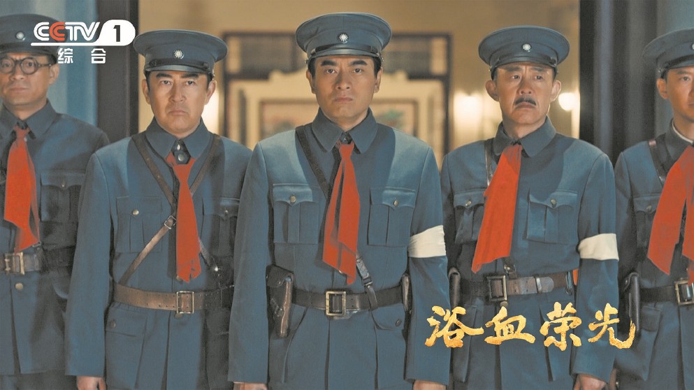 《浴血榮光》從歷史中鉤沉細節(jié),還原了中國共產(chǎn)黨人發(fā)動南昌起義的過程?!啊由浇y(tǒng)一’的口令在片場很振奮人心!”那場戲至今在陳龍心頭翻滾。進組前,他見過《八一南昌起義》的油畫,看過湯曉丹導(dǎo)演的上影廠經(jīng)典影片《南昌起義》,對周恩來振臂朝天連發(fā)三槍的場景,毫不陌生。但當《浴血榮光》劇組正式拍攝那場戲,周恩來從門洞里走出,身邊將星聚首,面前、身后都堅定地站著無數(shù)人,打響武裝反抗國民黨反動派的第一槍,“那種無以言表的激動、心靈的震撼,可能只有我自己能真切體會到”。