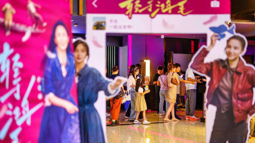 8月31日,觀眾在天津市濱海文化中心保利萬和國際影城準備入場觀影。新華社發(fā)(杜鵬輝攝)