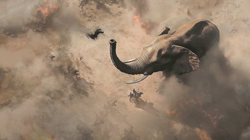 百米青銅巨門徐徐開啟,祭祀臺(tái)上女子隨樂(lè)獨(dú)舞,突然黃沙漫天,戰(zhàn)象狂奔而來(lái),未等塵埃落定,視線閃回“博物館”,金戈鐵馬化作一尊尊精美文物浮現(xiàn)眼前……