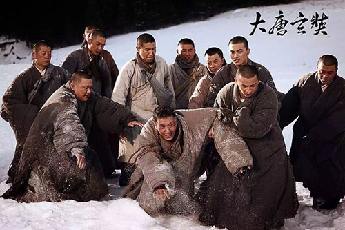 1300多年前,玄奘法師用了19年完成了這段行走在信念之上的旅程:他遠赴印度求法,而心中早已成佛?!洞筇菩省吩佻F(xiàn)了這一段傳奇之旅,玄奘西行中經(jīng)歷了各種磨難,甚至數(shù)度命懸一線:被當(dāng)成偷渡者,險中西域邊陲的箭雨;徒弟石盤陀因被心魔驅(qū)動,竟對恩師匕首相對。廣袤無垠的沙漠中失去水源又迷失方向時,差點命喪黃沙,這些都擋不住他鑒定的腳步。最終玄奘憑著內(nèi)心不變的信念,完成了這段不可能的旅程。桑馴華飾演的小和尚一直陪在黃曉明飾演的玄奘法師身邊,一切艱難險阻都一起經(jīng)歷了,影片轉(zhuǎn)戰(zhàn)各地實景拍攝——玄奘自長安,途徑哈薩克斯坦等國,最終達到印度,每一個地區(qū)百姓的不同口音,不一樣的服裝、建筑風(fēng)格,不一樣的地理特征,配合每個地域特有的民族風(fēng)情的配樂,令人印象深刻。但對于黃曉明和桑馴華而言,在這大好風(fēng)光背后,卻都充斥著