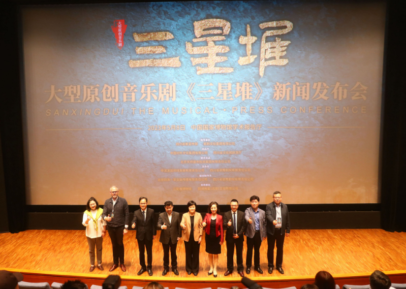 由四川省委宣傳部、紫荊文化集團(tuán)有限公司指導(dǎo),中國對外文化集團(tuán)有限公司、四川省文化和旅游廳出品,北京天橋盛世投資集團(tuán)有限責(zé)任公司聯(lián)合出品,中演演出院線發(fā)展有限責(zé)任公司、四川省歌舞劇院有限責(zé)任公司聯(lián)合主辦,北京四海一家文化傳播有限責(zé)任公司、四川省歌舞劇院有限責(zé)任公司聯(lián)合制作、三星堆博物館支持的大型原創(chuàng)音樂劇《三星堆》新聞發(fā)布會8日在中國國家博物館舉行。