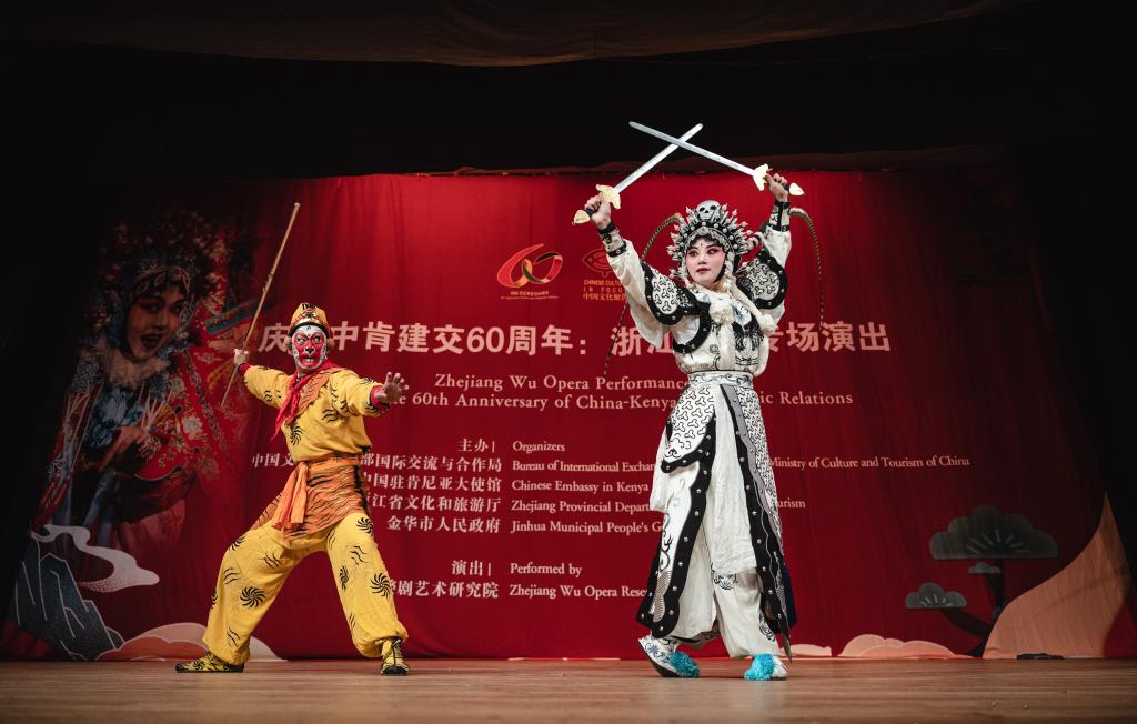 9月5日,婺劇演員在肯尼亞首都內(nèi)羅畢表演《三打白骨精》。新華社記者 王冠森 攝