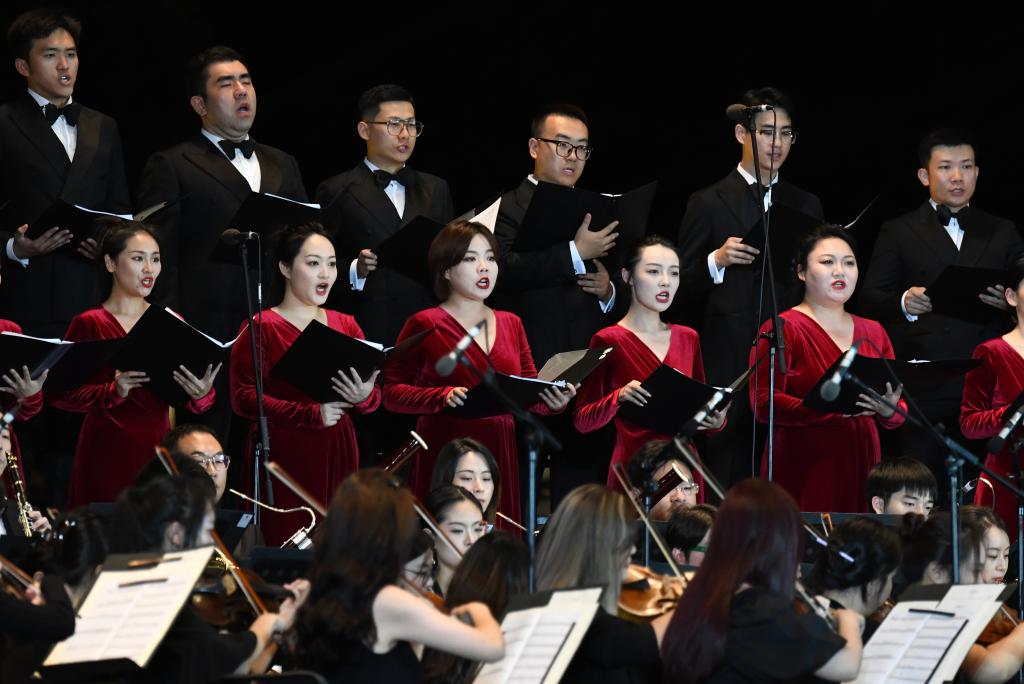 9月10日晚,西安交響樂團合唱團在西安大雁塔北廣場戶外公演。新華社記者 李一博 攝
