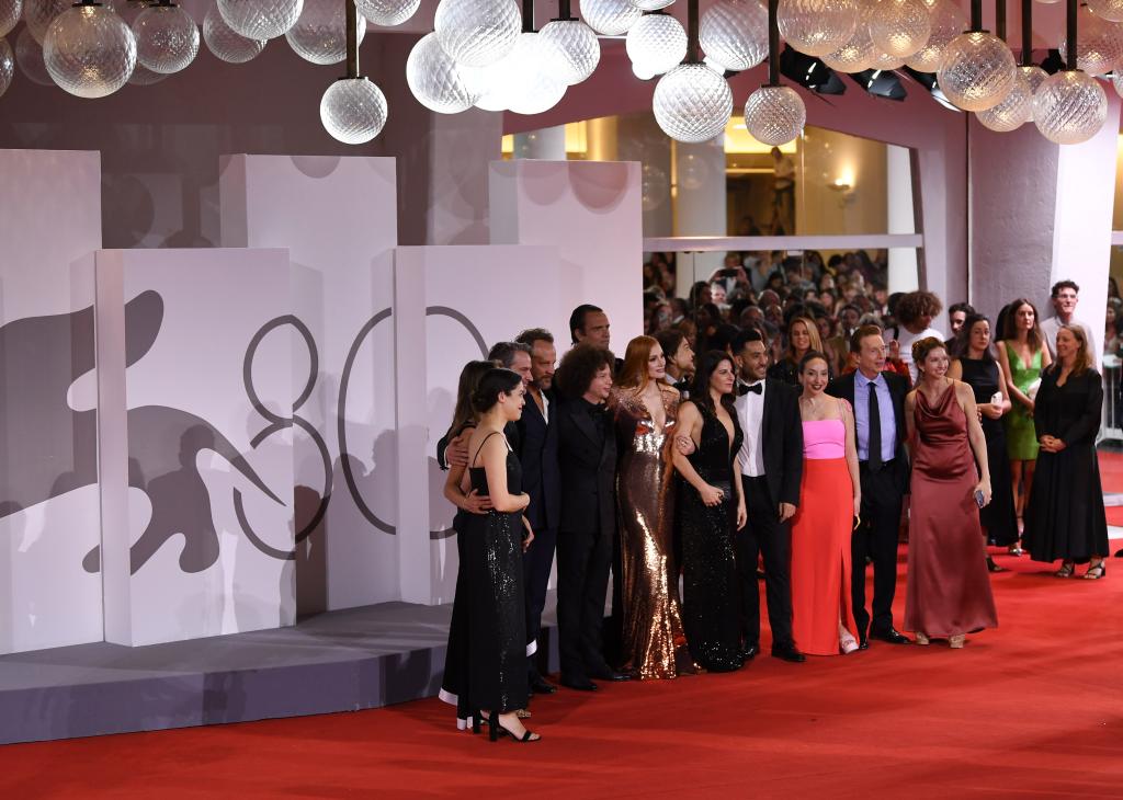 9月8日,在意大利威尼斯,電影《記憶》主創(chuàng)人員亮相首映式紅毯。新華社記者 金馬夢妮 攝
