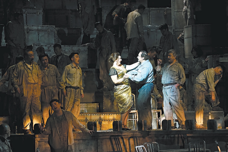 頗有年代感的大皮箱擺了一地,臺(tái)球桌橫陳潦草,酒杯滿天亂飛,酒館老板、礦工、盜匪粉墨登場(chǎng),一派粗糲的莽荒氣質(zhì)撲面而來,如同一部酣暢淋漓的西部大片。上周末,國(guó)家大劇院制作的普契尼歌劇《西部女郎》正在緊張彩排,7月23日至27日,著名指揮家卡羅·利茲將執(zhí)棒國(guó)家大劇院管弦樂團(tuán),攜手中、美、意三國(guó)藝術(shù)家組成的創(chuàng)演陣容,把這部描寫加利福尼亞淘金熱的歌劇帶上2024國(guó)家大劇院歌劇節(jié)的舞臺(tái)。