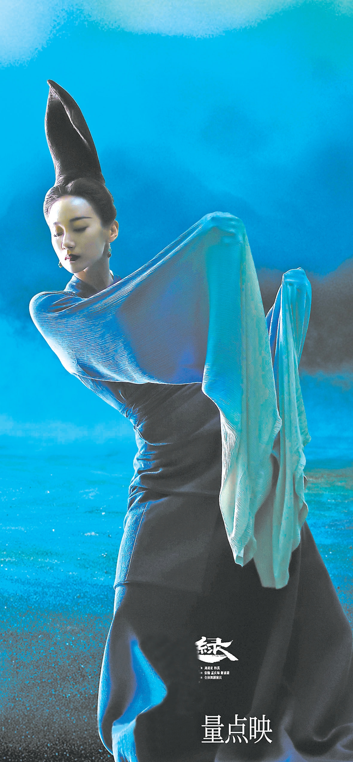 除此之外,《只此青綠》對(duì)舞蹈部分的呈現(xiàn)也十分精彩,用近景和特寫捕捉動(dòng)作細(xì)節(jié),用全景拍攝群舞的整體畫面。故事中情緒激昂的部分,如“問篆”“尋石”“淬墨”三篇,利用傾斜、旋轉(zhuǎn)等特殊景別和運(yùn)鏡來表達(dá)。寫意較多的部分,如“青綠”“入畫”兩篇,用特效輔助畫面,舞者的裙裾在地面上留下青綠墨痕,讓已在畫中靜待千年的色彩瞬間活了起來。此外,高速攝影進(jìn)一步保留了舞者的姿態(tài)和動(dòng)作細(xì)節(jié)??梢哉f,電影版《只此青綠》充分利用銀幕鏡頭的特性,幫助觀眾更好地欣賞、理解舞蹈,也讓整個(gè)故事有了更強(qiáng)的沉浸感。