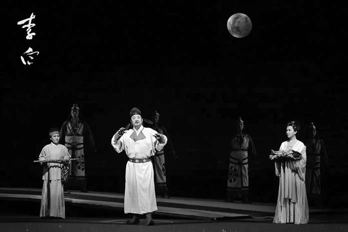 “盛唐哀音格亦狀,衰年本色氣猶春?!币压蕦?dǎo)演蘇民曾用這兩句詩來表述《李白》的格調(diào)。他認(rèn)為這出戲要用美與多彩的韻味、節(jié)奏,包裹著李白坎坷而又明朗的一生;形象宜大不宜小,宜空靈不宜瑣碎;虛處宜深遠(yuǎn)近乎朦朧,實(shí)處宜簡明而不要多姿;宜在自然流暢中見功夫,應(yīng)講究技巧而不露。根據(jù)導(dǎo)演的要求,該劇舞美設(shè)計不但給演員提供了開闊的表演空間,賦予舞臺無限優(yōu)美的詩意境界,也符合《李白》所需要的既真實(shí)、深切,又有節(jié)奏起伏適度夸張的表演風(fēng)格。2003年,導(dǎo)演唐燁的加入,給《李白》注入了新的活力。她與蘇民導(dǎo)演研究合作,做出了一系列調(diào)整,既保留了作品深邃空靈、娓娓道來的神韻,也更符合新時期觀眾對歷史劇的理解。
