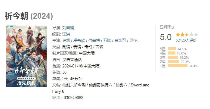 有意思的是,數(shù)量上來(lái)了,有些仙俠劇的質(zhì)量卻沒(méi)跟上。截至目前,相較于早前“仙劍一”與“仙劍三”的高評(píng)分,《千古玦塵》在豆瓣只拿到了5.5分,《祈今朝》是5分,“仙劍四”只有4.3分。
