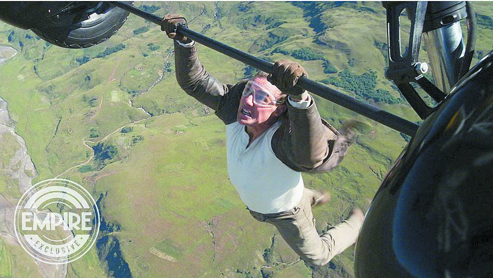 可以明確的是,在這部長達2小時49分鐘的電影里,主演湯姆·克魯斯以63歲的年齡仍奮力奔跑,上天入海。看到銀幕上的他脫掉潛水服,只穿泳褲在冰封下的海中潛泳,以及他手腳并用攀附著螺旋槳戰(zhàn)斗機,山谷狂風(fēng)把他的頭發(fā)吹得根根分明如同拉直的鋼絲……在這些場面里,情節(jié)失去了意義,“碟中諜”系列的全部內(nèi)容是湯姆·克魯斯這個銀幕巨星。從1996年的第一部《碟中諜》到現(xiàn)在,他在長達30年、近三分之一個世紀的時間里,用電影對抗現(xiàn)實的時間,對抗真實世界里身體受到的物理局限,仿佛在伊?!ず嗵卣仁澜绲闹蹦型捓铮娪白屗麚碛辛瞬焕虾筒凰赖奶貦?quán)。盡管在《碟中諜8》的海報上,皺紋布滿那張曾經(jīng)被認為宛如阿波羅的面孔,可是他在海里撲騰或半裸著進行體能訓(xùn)練時,畫面上的身材線條挑戰(zhàn)著觀眾對“花甲之年”的認知。