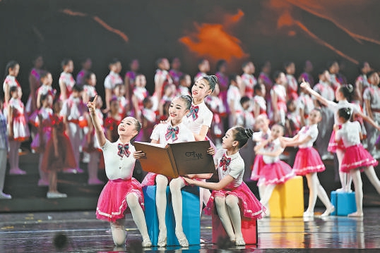 演出由中國宋慶齡基金會、中國福利會、國家大劇院共同主辦,北京市教育委員會、中國青少年宮協(xié)會、北京京劇院支持。圍繞“我和祖國一起成長”的主題,“如日之升·如月之恒”“美美與共·琴瑟和鳴”“翩翩少年·灼灼其華”“薪火相承·筑夢未來”4個篇章層層遞進,融匯合唱朗誦、戲曲舞蹈、器樂演奏、武術雜技、非遺文化展示等多種藝術形式。開場秀《少年強則中國強》薈萃中國大鼓、武術、舞龍、舞獅,朝氣蓬勃;舞蹈詩朗誦《離騷·少年志》把詩意融入舞蹈,綻放強烈的愛國主義光芒;雜技劇《如日凌風》藝術化呈現“神舟飛天、蛟龍入?!钡目茖W探索精神;戲劇《硝煙中的燭光》展現宋慶齡為爭取國際友好力量支持中國人民抗戰(zhàn)的場景,以及創(chuàng)辦戰(zhàn)時兒童保育院、用生命守護國家希望的感人故事……