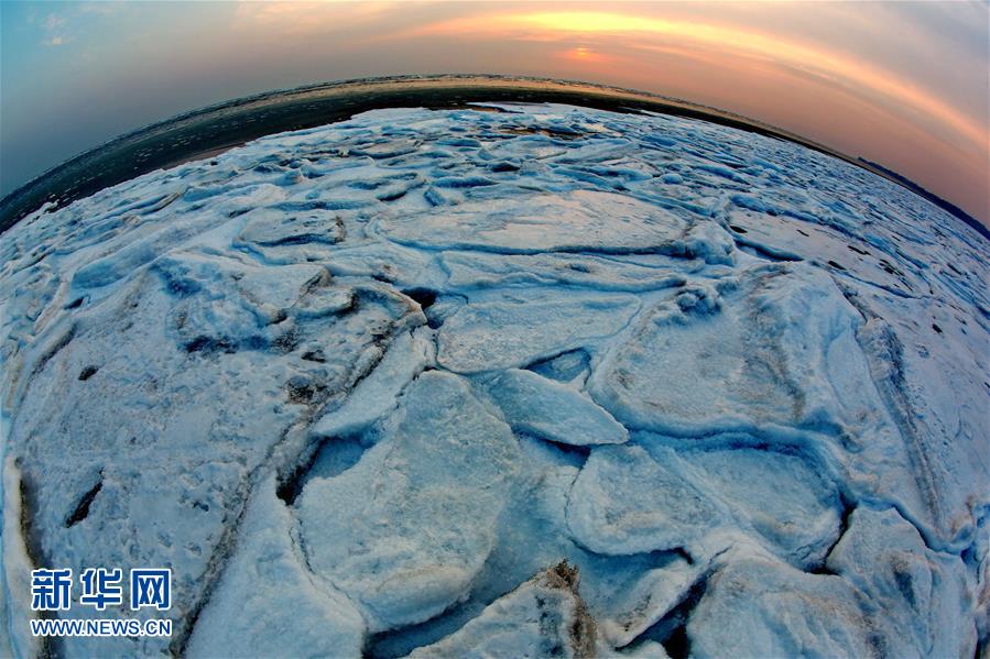 這是秦皇島市海港區(qū)海邊的冰海日出景色(1月3日攝)。進入冬季,河北省秦皇島沿海岸線出現(xiàn)結(jié)冰現(xiàn)象,呈現(xiàn)出“冰海奇觀”的風景。 新華社記者楊世堯攝