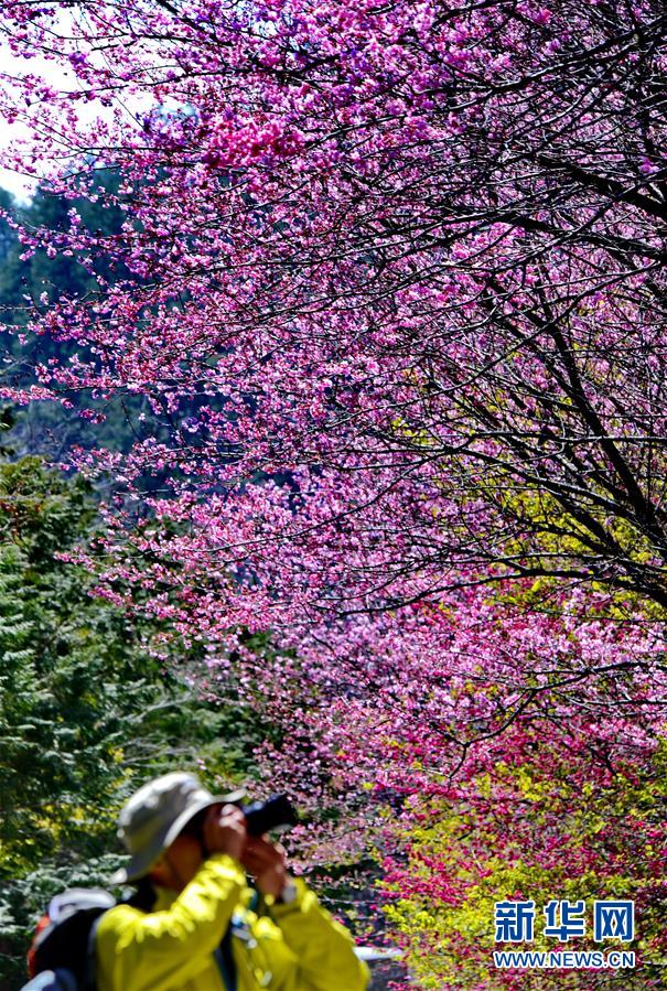 2月29日,游客在武陵農(nóng)場賞花。初春的臺灣,氣溫回升,位于海拔1700多米的臺中武陵農(nóng)場,漫山遍野的櫻花競相開放,美不勝收,吸引了四面八方的游客前來觀賞。 新華社記者張國俊 攝