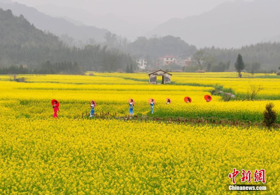 3月20日,江西省德興市??阪?zhèn)杜村婦女在田間花海“走秀”。當日,江西德興市??阪?zhèn)杜村一批家庭婦女以千畝油菜花海為舞臺,展示自己的才藝形象,希望宣傳家鄉(xiāng)的自然生態(tài)與人文歷史,擴大旅游知名度和影響力。德興市海口鎮(zhèn)杜村交通便利,自然風光優(yōu)美,村內(nèi)有歷史古跡和名木古樹。 胡敦煌 攝