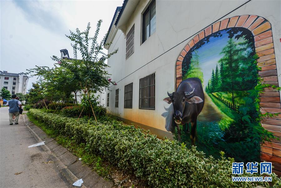 浙江省長興縣北湯村的村舍墻壁上繪有3D畫(7月13日攝)。 7月初,由上海的藝術家團隊繪制的多幅3D藝術畫亮相浙江省長興縣林城鎮(zhèn)北湯村的村舍墻上。林城鎮(zhèn)北湯村是浙江省長興縣新農(nóng)村建設示范點,此次繪制3D藝術畫墻,是該村提升農(nóng)村品味、打造“詩畫北湯”的新舉措。 新華社記者徐昱攝