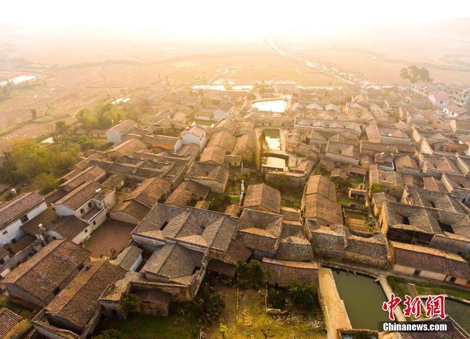 12月10日,航拍位于江西金溪縣有著600多年歷史的中國(guó)歷史文化名村、中國(guó)傳統(tǒng)村落竹橋古村,俯瞰全村,形似一柄巨扇。該村現(xiàn)保存有明代所建民居8幢,明代祠堂1幢,其余為清代建筑,青磚灰瓦,樸實(shí)素雅,為贛派建筑最典型的代表。村前溪水長(zhǎng)流,良田萬頃,村后茂林修竹,鳥鳴樹幽,身歷其境,如入畫中。傅建斌 攝