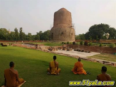 鹿野苑,即 Sārnāth,曾名為 Mrigadava、Rishipattana、Isipatana,位于印度北方邦瓦拉那西以北約10公里處,是釋迦牟尼成佛后初轉(zhuǎn)法輪處,佛教的最初僧團(tuán)也在此成立。鹿野苑是佛教在古印度的四大圣地之一。Mrigadava 意為鹿園;Isipatana 常見于巴利藏,意為圣者來臨之地。Sārnāth 源自 Sāranganātha,意為鹿王。在一個(gè)佛教典故中,菩薩化現(xiàn)為鹿王,為了保護(hù)鹿群,將自己獻(xiàn)給國王,國王也因此感動,建立了公園,以保護(hù)鹿群。
