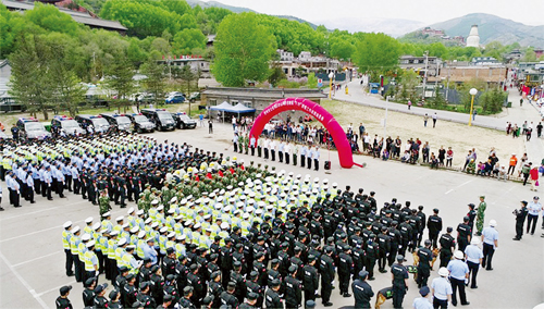 為了擦亮佛教圣地五臺(tái)山這個(gè)旅游窗口,打造形象五臺(tái)山,忻州市公安局部署從今年5月1日起至10月31日,在五臺(tái)山風(fēng)景區(qū)開(kāi)展流動(dòng)人口暨治安秩序大整治(即兩項(xiàng)整治)工作,從秩序安全、流動(dòng)人口管理、治安、交通和消防等5大類33個(gè)層面對(duì)五臺(tái)山風(fēng)景區(qū)進(jìn)行集中整治。時(shí)值“兩項(xiàng)整治”進(jìn)入高潮之際,五臺(tái)山迎來(lái)了“5.19”中國(guó)旅游日,忻州市公安局黨委將此次“5.19”治安工作作為“兩項(xiàng)整治”的第一次大考,當(dāng)作首次檢驗(yàn)整治機(jī)制、設(shè)施、效果和隊(duì)伍的絕佳機(jī)會(huì)。為此,市公安局從市局、五臺(tái)山風(fēng)景區(qū)、五臺(tái)縣、繁峙縣、原平市、代縣等地和武警、消防、保安公司抽調(diào)精干警力和安保人員組成執(zhí)勤隊(duì)伍。18日下午,市公安局在五臺(tái)山景區(qū)舉行戰(zhàn)前動(dòng)員會(huì)。動(dòng)員指出:省、市黨委政府高度重視五臺(tái)山工作,忻州公安要提高政治站位抓安保;“5.19”安保是對(duì)全市公安機(jī)關(guān)戰(zhàn)斗力的一次綜合檢驗(yàn),是十九大前的一次安保實(shí)兵演練,要堅(jiān)定必勝信心抓安保;此次安保意義重大,要發(fā)現(xiàn)差距,總結(jié)經(jīng)驗(yàn),固化機(jī)制,為五臺(tái)山形成安全穩(wěn)定暢通有序的長(zhǎng)效安保機(jī)制打下基礎(chǔ)。