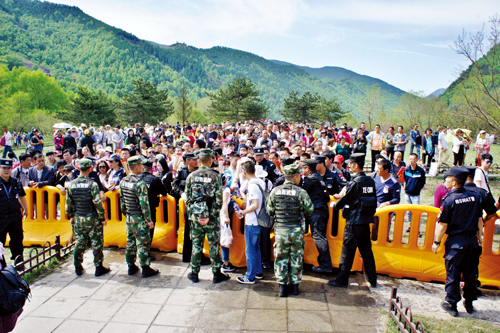5月19日中國(guó)旅游日,佛教圣地五臺(tái)山實(shí)行三免費(fèi)(免進(jìn)山費(fèi)、免景點(diǎn)門票費(fèi)、免觀光旅游車費(fèi)),當(dāng)日,來(lái)自海內(nèi)外的游客呈現(xiàn)“井噴”,總?cè)藬?shù)達(dá)106360人,是近年來(lái)單日人數(shù)之最。忻州公安出動(dòng)精干警力,精心組織、超前謀劃、晝夜無(wú)眠,實(shí)現(xiàn)了全山大局穩(wěn)定,道路暢通,整個(gè)景區(qū)平安、和諧、有序。