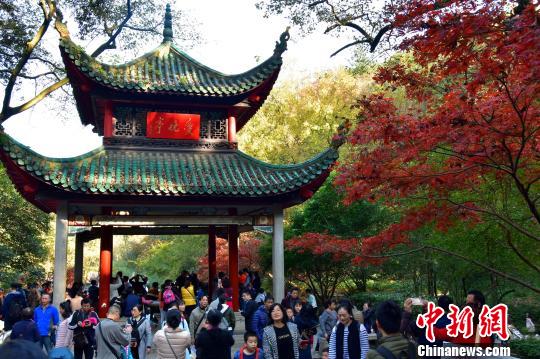 11月26日,長(zhǎng)沙岳麓山上迎來(lái)眾多游客扎堆賞楓。岳麓山是全國(guó)四大賞楓勝地之一,每年的11月下旬至12月為最佳觀賞期,登山可看到“漫山紅遍,層林盡染”的美景。