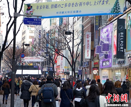 資料圖為游客集中的韓國首爾明洞地區(qū)。中新社記者 吳旭 攝