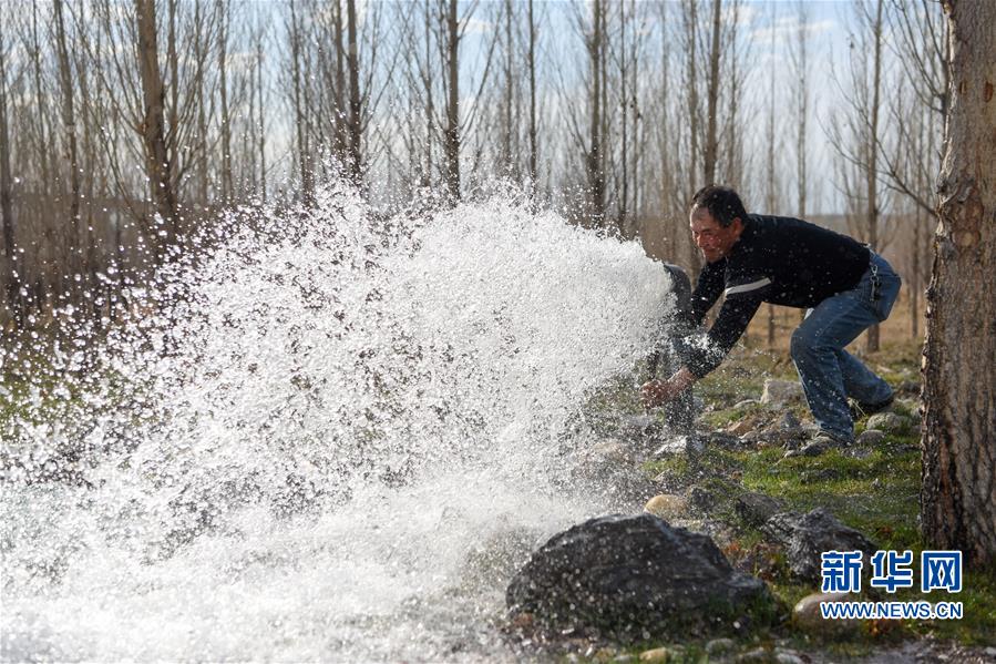 4月19日,在阿勒泰市中水回用環(huán)境治理示范園,工人放水灌溉苗木。 近年來,新疆阿勒泰市利用經(jīng)污水處理廠處理達標后的中水,灌溉建在戈壁灘上的苗圃基地,形成良性循環(huán),助力綠化工程,改善生態(tài)環(huán)境。從2017年至今,阿勒泰市中水回用環(huán)境治理示范園已為當?shù)鼐G化工程提供40萬株樹苗,實現(xiàn)5000畝荒山綠化。 新華社記者 丁磊 攝