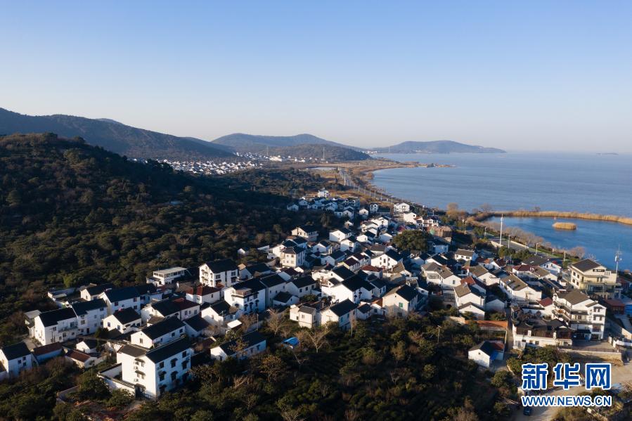 1月13日拍攝的蘇州吳中區(qū)金庭鎮(zhèn)西山島景色(無人機照片)。