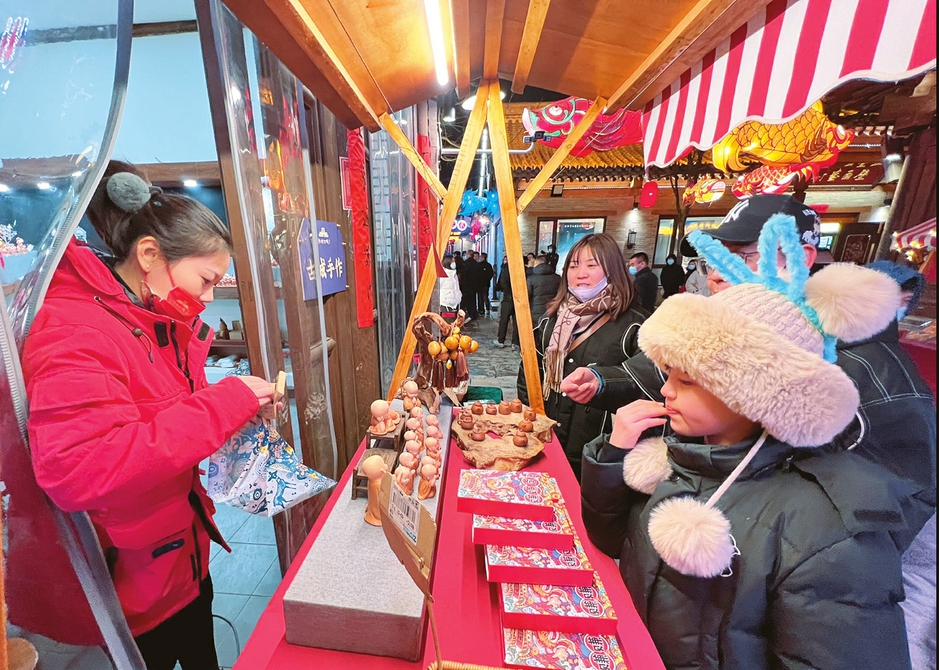 一月二十七日晚,忻州古城,游客正在選購(gòu)民間手工藝品。春節(jié)期間,忻州古城推出了“中國(guó)年·在忻州”系列活動(dòng),傳統(tǒng)習(xí)俗與本地特色融合,廣大市民及游客體驗(yàn)到了別具特色的年味。本報(bào)記者李兆民攝