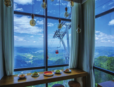 葛仙村度假區(qū)的美食一定不能錯過,來到二樓的云端餐廳,透過180度全景落地玻璃,可以將葛仙村的美景一覽無余,原木色餐桌搭配星空頂,臨坐在窗前,品嘗各色美食補充能量,與家人或朋友把酒言歡,享受味蕾上的滿足感。