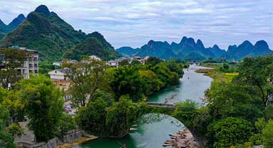 2023年10月20日,廣西桂林市陽(yáng)朔縣白沙鎮(zhèn)游客們錯(cuò)峰出游,搭乘竹筏在遇龍河上游覽,感受秋日的山水美景。李凱攝(人民圖片網(wǎng))