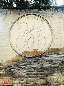 “龍鶴?!贝u雕影壁位于張壁古堡賈家巷,是官紳張禮維故居的一部分,建于清朝乾隆年間,至今已有二百多年歷史。影壁上的這個“?!弊?,起筆狂草灑脫俊逸,轉(zhuǎn)承行書剛勁有力,而落筆于“田”字時則急轉(zhuǎn)為楷端莊方正。福字集三種書法為一體,凌而不亂渾然天成。