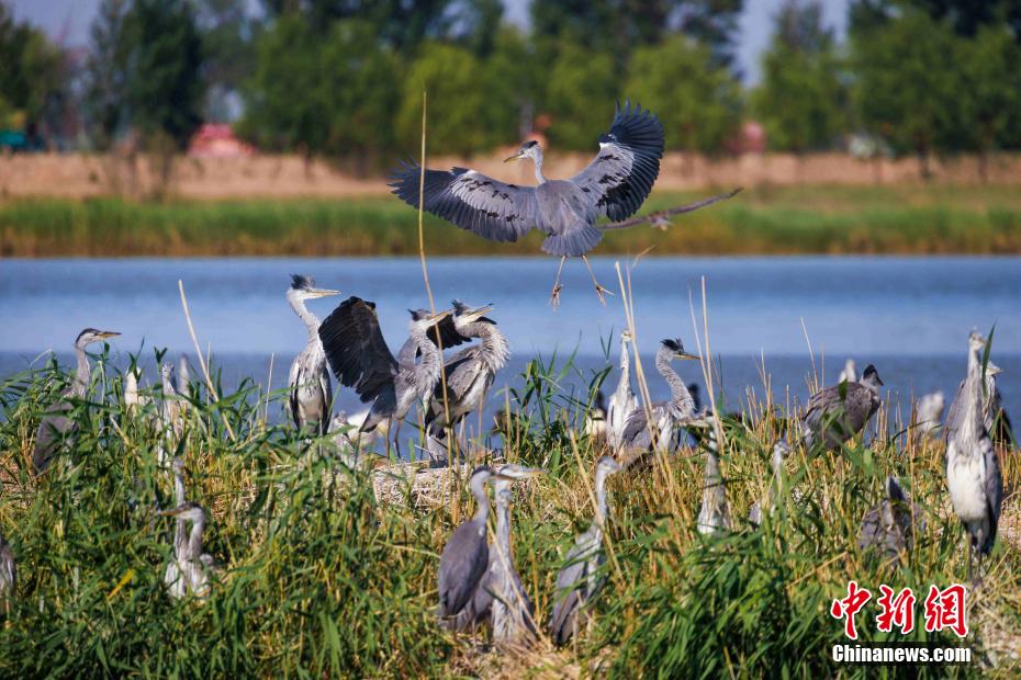 成年蒼鷺正在向幼鳥展示飛行本領(lǐng)。6月,內(nèi)蒙古托克托縣黃河濕地碧水蕩漾、鳥語花香,大批在此“安家”的蒼鷺迎來繁衍生息的關(guān)鍵季節(jié)。清晨,成年蒼鷺們?yōu)橛坐B成長開啟了一天的忙碌,它們或靜待水面狩獵,或帶幼鳥展翅學飛,或攜食歸巢反哺……