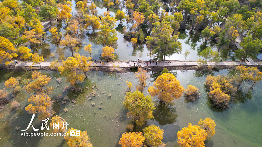 2024年9月27日,甘肅省酒泉市金塔沙漠胡楊林景區(qū)萬畝生態(tài)胡楊林層林盡染,景美如畫。曹紅祖攝(人民圖片網)