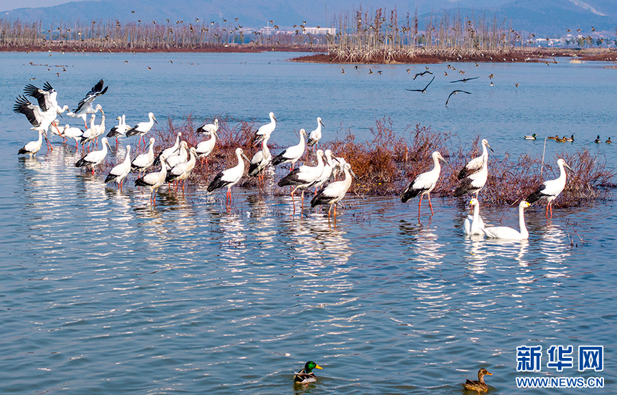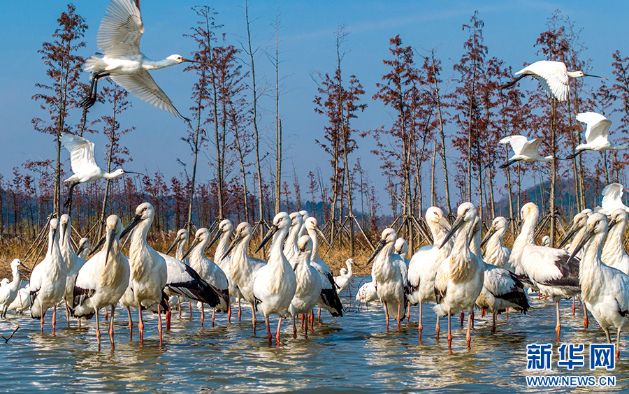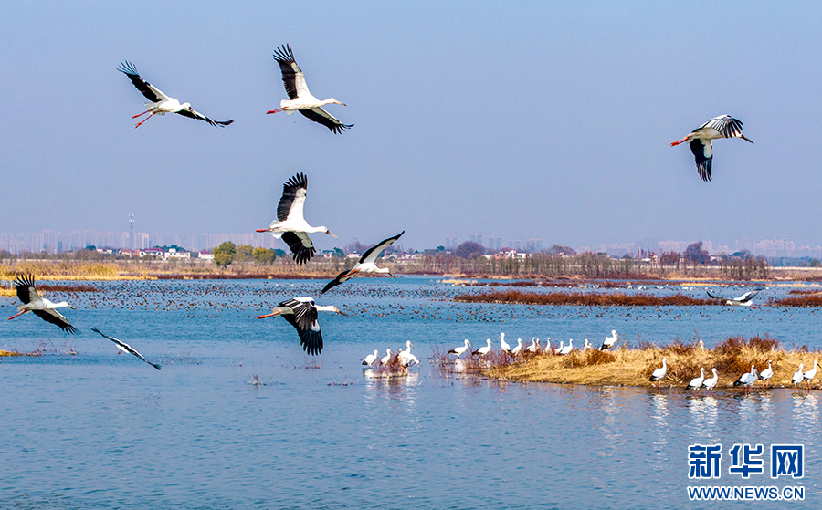 近年來,廬江縣加大黃陂湖濕地保護(hù)力度,4萬多畝的濕地環(huán)境得到較大改善。每年冬季,東方白鸛、白鶴等大量珍稀候鳥都按時來此過冬,萬鳥齊飛的壯觀場面已經(jīng)成為廬江縣黃陂湖濕地最靚麗的風(fēng)景。新華網(wǎng)發(fā)(左學(xué)長 攝)