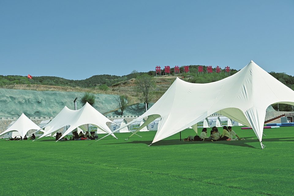 5月5日,長治市上黨區(qū)永豐農(nóng)耕文化體驗園內(nèi),白色帳篷錯落分布,游客們樂在其中。隨著鄉(xiāng)村旅游興起,越來越多的人們利用假期走進鄉(xiāng)村,體驗田園生活。