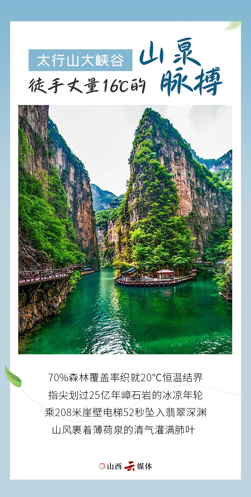 近日,全國(guó)多地持續(xù)高溫,不少地方氣溫高達(dá)40℃以上,而山西卻以20℃的峽谷穿堂風(fēng)、萬(wàn)年冰洞的寒冰棱鏡,為盛夏高溫按下了暫停鍵。在山西,空調(diào)不如山風(fēng),WiFi不如溪鳴,暑氣被太行山脊攔腰斬?cái)?,只留下滿(mǎn)目青翠與心尖清涼。