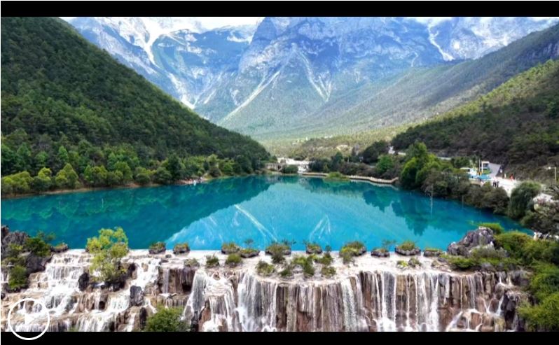 夏日氛圍感!麗江藍月谷湖水如鏡“復制”天光山色