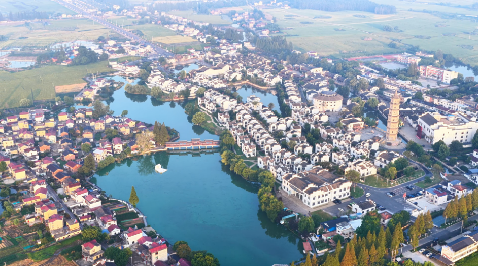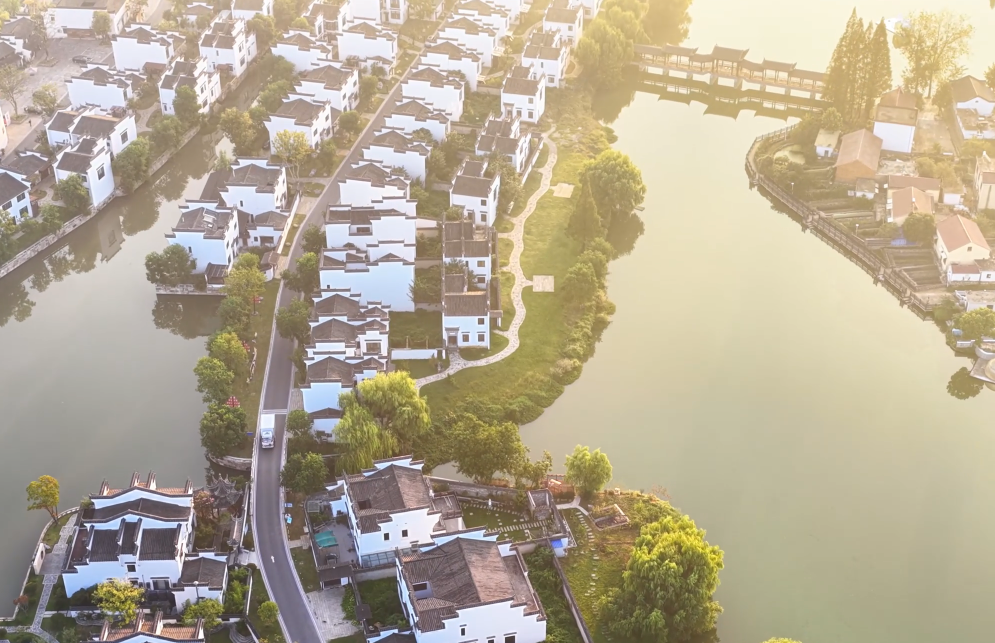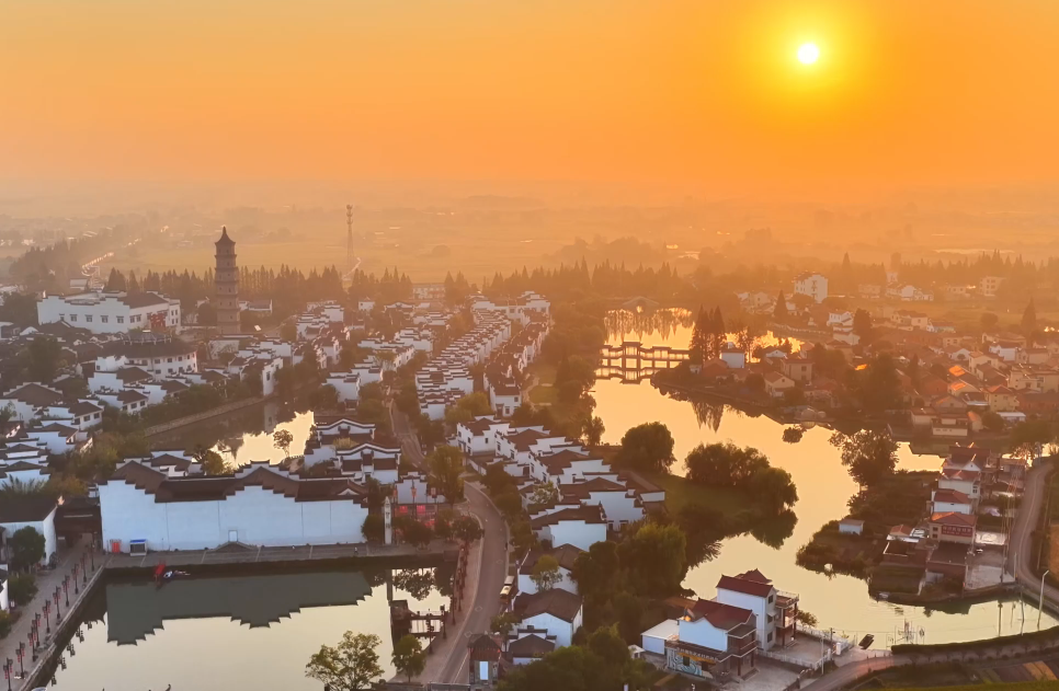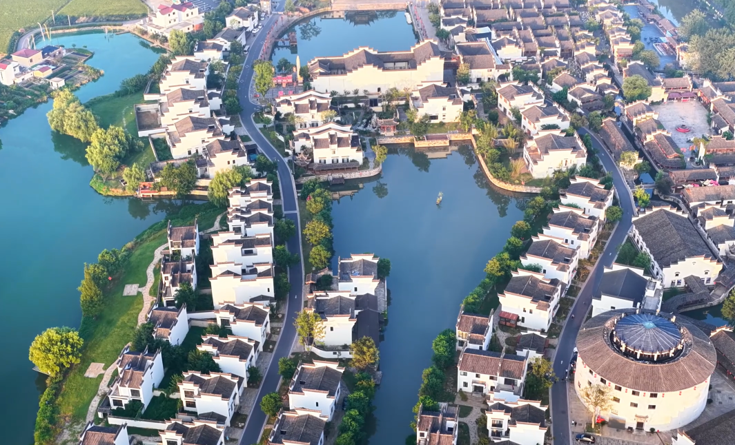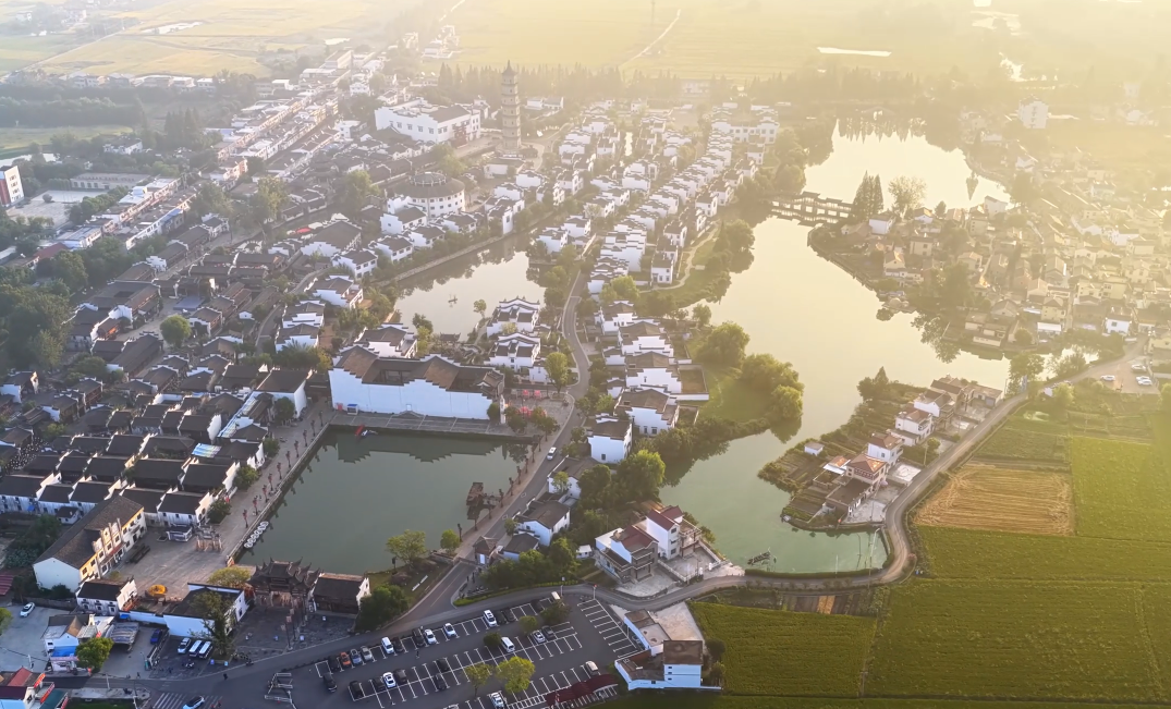 ?秋日清晨,位于安徽省銅陵市的犁橋水鎮(zhèn)在晨霧中蘇醒。放眼望去,白墻黛瓦的徽派民居錯落有致,與湖畔倒影、街旁的金色稻田共同構(gòu)成一幅和諧的江南秋景圖。