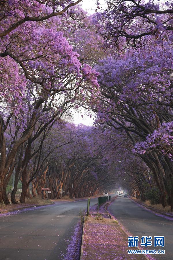 在津巴布韋首都哈拉雷,隨處盛開的藍花楹成為靚麗的風景(10月2日攝)。 近日,位于非洲南部的津巴布韋進入春季,全國各地的藍花楹紛紛盛開。津巴布韋風光秀麗,擁有維多利亞瀑布、大津巴布韋遺址等5處世界自然或文化遺產(chǎn)。首都哈拉雷有多處神奇的平衡石景觀,同時也因出色的園藝被稱為非洲“花城”。新華社發(fā)(陳雅琴攝)