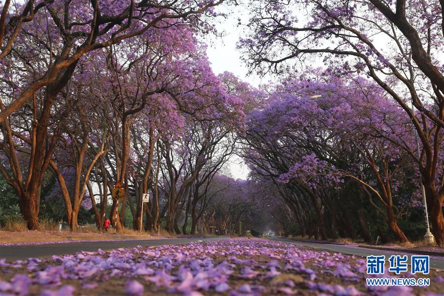 在津巴布韋首都哈拉雷,隨處盛開的藍(lán)花楹成為靚麗的風(fēng)景(10月2日攝)。 近日,位于非洲南部的津巴布韋進(jìn)入春季,全國(guó)各地的藍(lán)花楹紛紛盛開。津巴布韋風(fēng)光秀麗,擁有維多利亞瀑布、大津巴布韋遺址等5處世界自然或文化遺產(chǎn)。首都哈拉雷有多處神奇的平衡石景觀,同時(shí)也因出色的園藝被稱為非洲“花城”。新華社發(fā)(陳雅琴攝)
